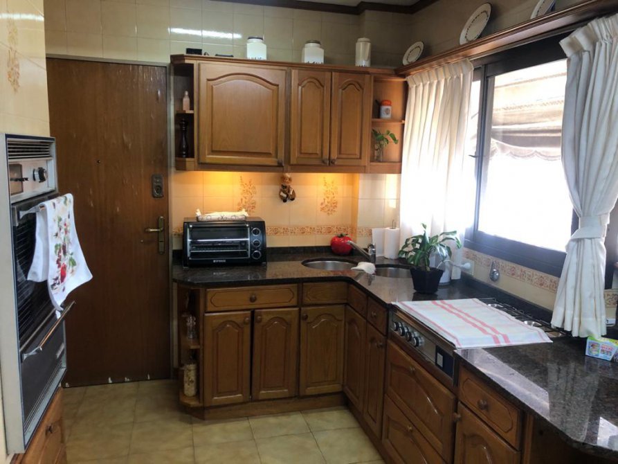 Cocina con comedor diario, muebles empotrados, vajilleros y bodega