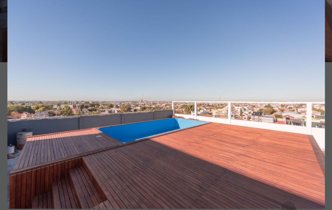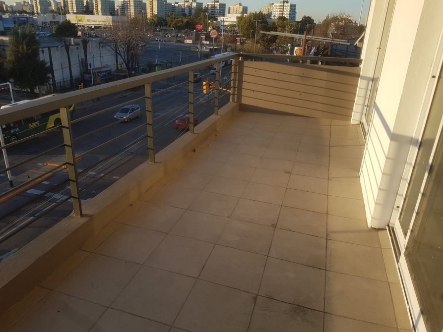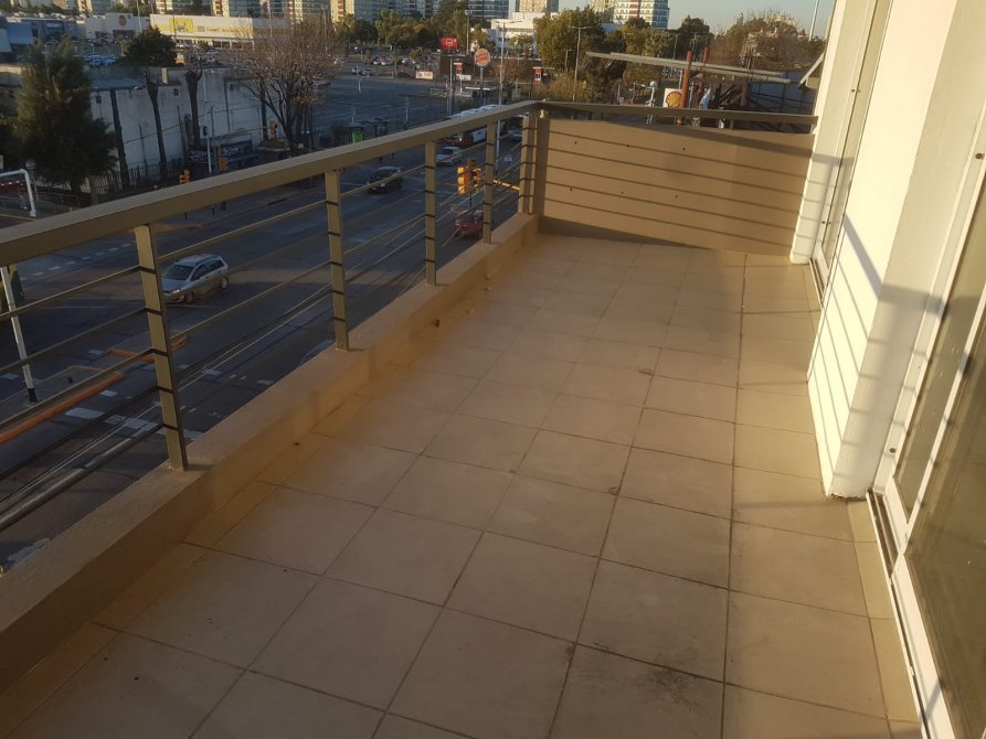 Balcón terraza con baranda de aluminio y pisos cerámicos.