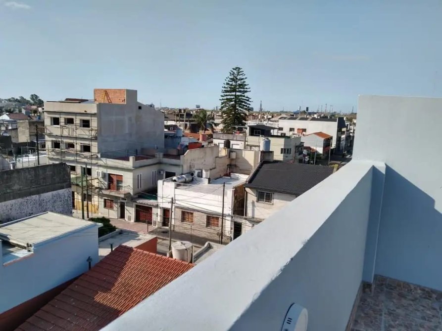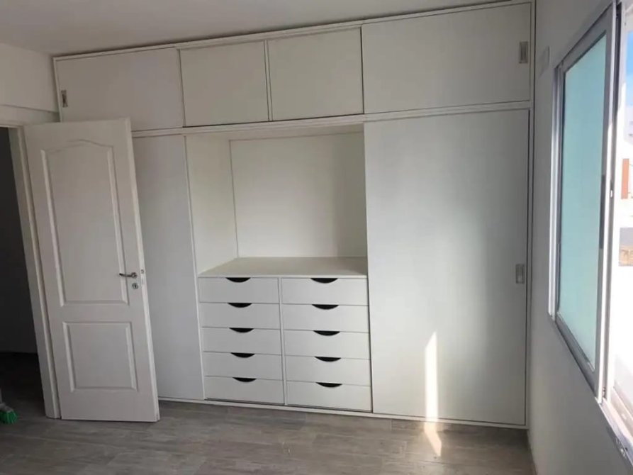 El baño completo, con un paso ancho que permite diversos usos, como un espacio adicional para escritorio o un segundo placard, conduce hacia el dormitorio, equipado con un placard y una ventana con vistas al tranquilo contrafrente. Los pisos de cerámica rectangular, de tono claro similar a la madera, añaden un toque moderno y acogedor a cada ambiente.