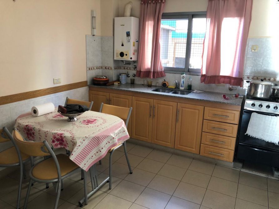 Cocina totalmente equipada, con mesada de mármol y pisos cerámicos