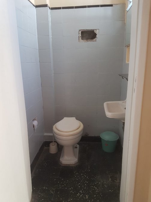 Baños: un toilette (1,05 x 1,03 m) con piso de granito y revestimiento en azulejos, y un segundo baño con ducha y lavadero.
